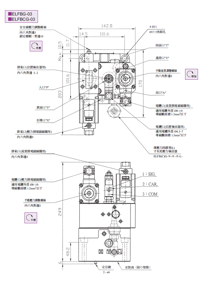 ELFB(C)G-06 adopts a large flow design, the maximum flow can reach 600L/min, the appearance size and weight are one level smaller than the traditional valve, which is very helpful to the miniaturization and light weight of the equipment.