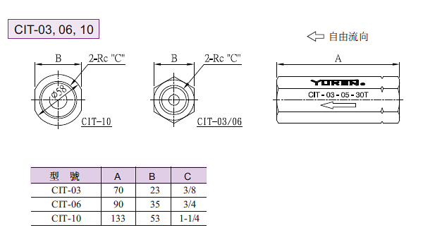 When the inlet pressure exceeds the rated opening pressure, this one-way valve allows the oil flow to flow freely from the inlet to the outlet and blocks the reverse flow of the oil flow.
