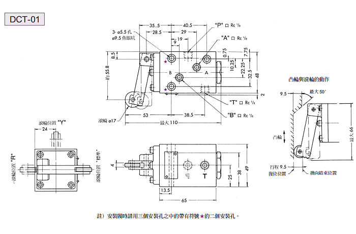 Your position: Home page > Product center > Directional control valve > Motorized directional valveThis valve is mainly used to manipulate the pilot oil circuit and use the cam stroke to press down the valve shaft to switch the direction of oil flow.