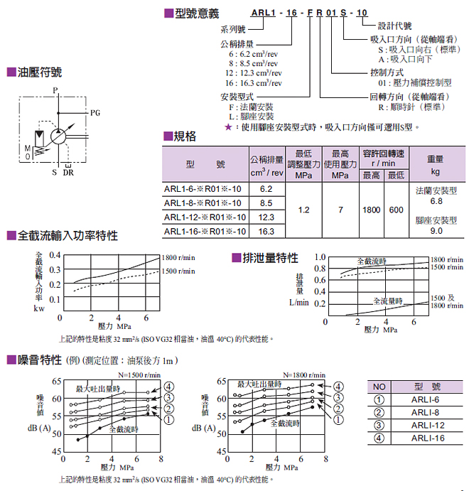 Low noise: The pressure is 7 MPa, the speed is 1500r/min, and the measured noise at a distance of 1m is 55dB(A) (ARL1-16 cut-off F.C.O representative value).