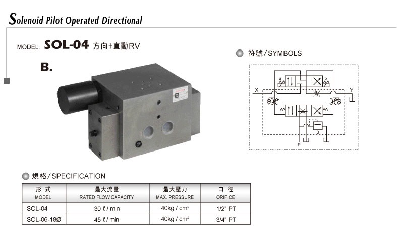 Your position: Home page > Product center > Taiwan Toyota FONGTIE > Solenoid guided directional valve SOL-04 direction + direct acting RVClassification: Taiwan Toyota FONGTIE