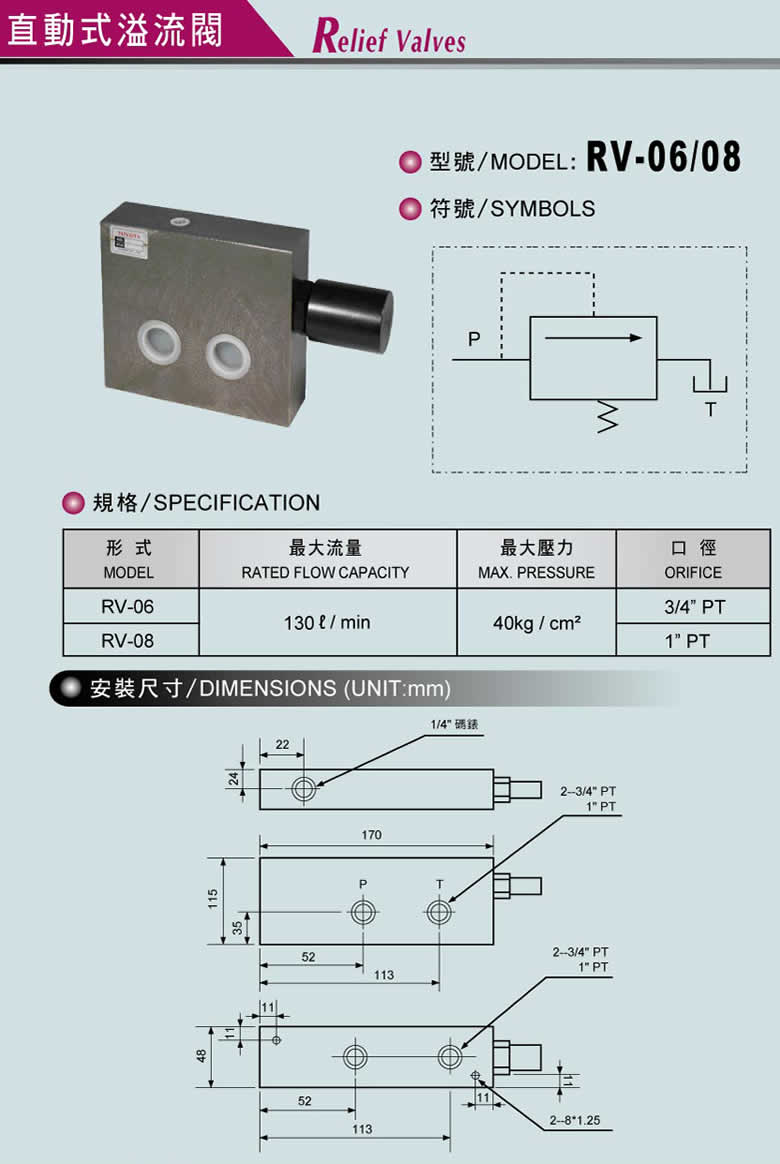 Your position: Home page > Product center > Taiwan Toyota FONGTIE > Direct-acting relief valve RV-06