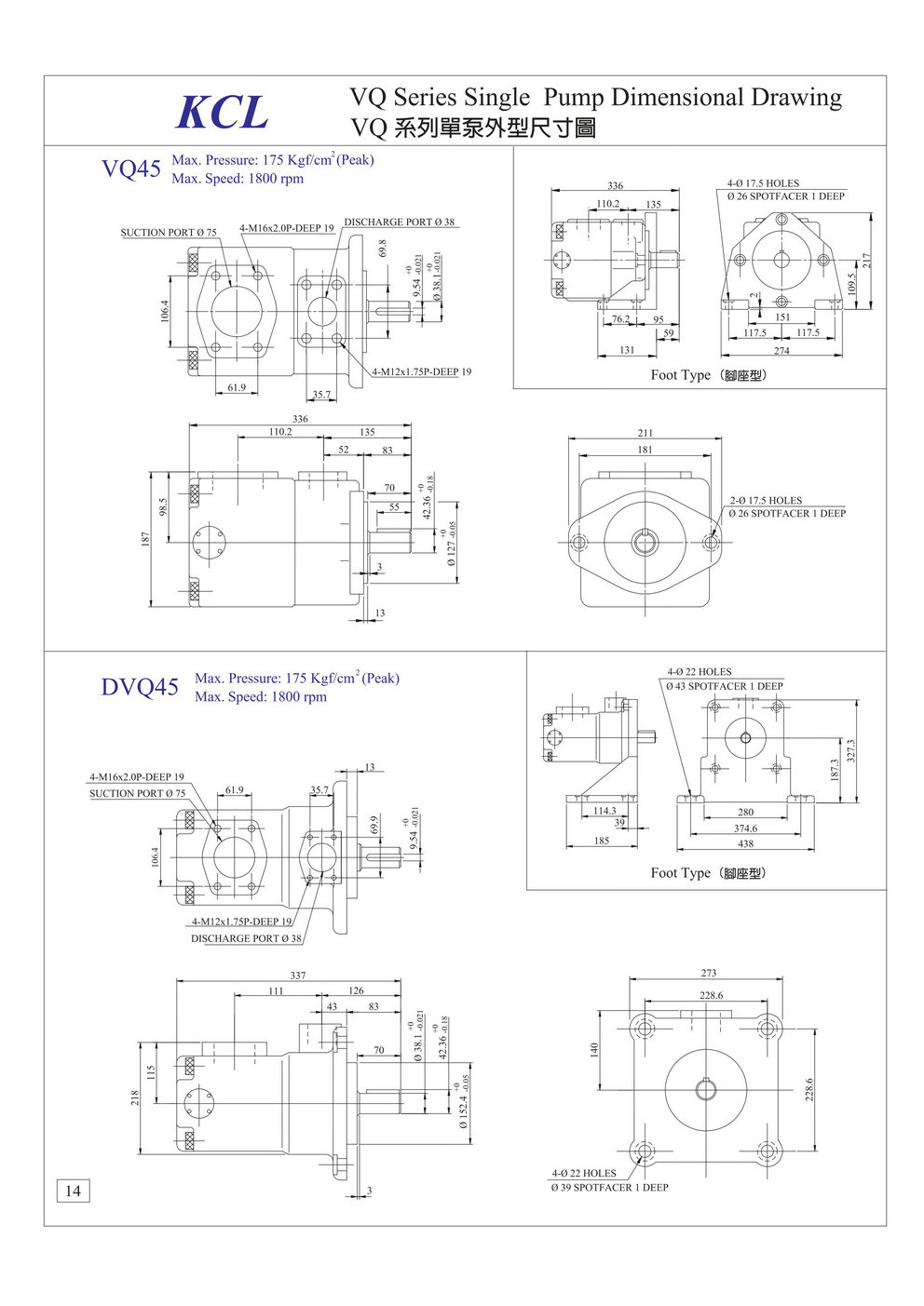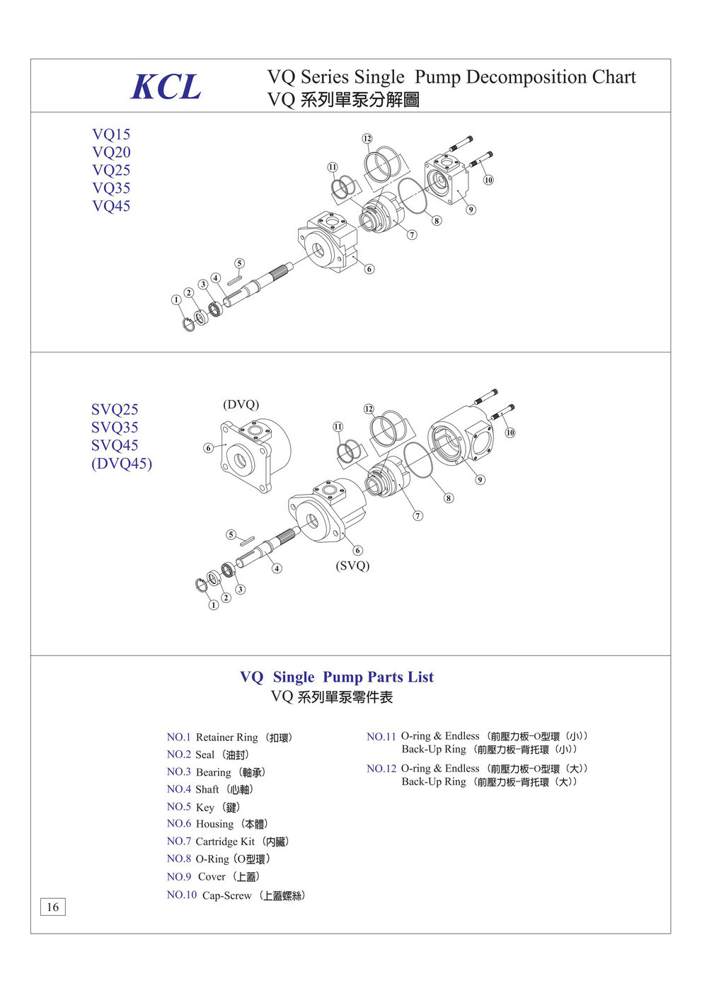 Taiwan Kaijia KCL single pump: HVQ25, VQ15, VQ20, VQ25, SVQ25, VQ35, SVQ35, VQ45, DVQ45, SVQ45.