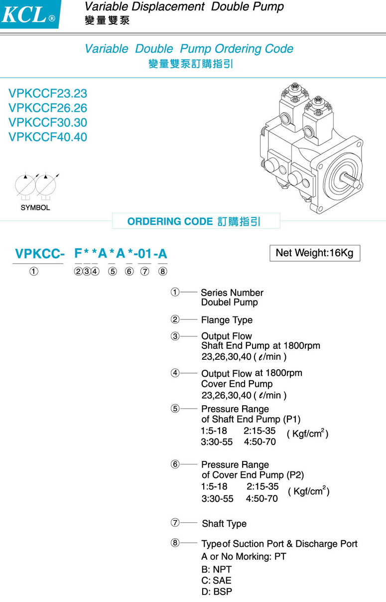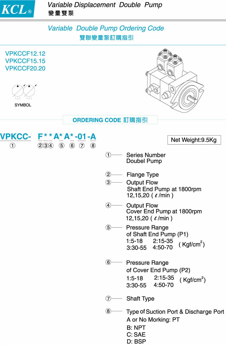 Taiwan Kaijia KCL variable double pump: VPKCCF12.12, VPKCCF15.15, VPKCCF20.20, VPKCCF23.23, VPKCCF26.26, VPKCCF30.30, VPKCCF40.40.
