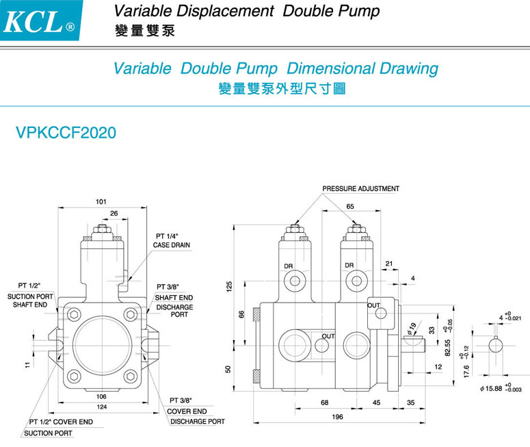 Your position: Home page > Product center > Taiwan Kaijia KCL > VPKCC double vane pumpTaiwan Kaijia KCL variable double pump: VPKCCF12.12, VPKCCF15.15, VPKCCF20.20, VPKCCF23.23, VPKCCF26.26, VPKCCF30.30, VPKCCF40.40.