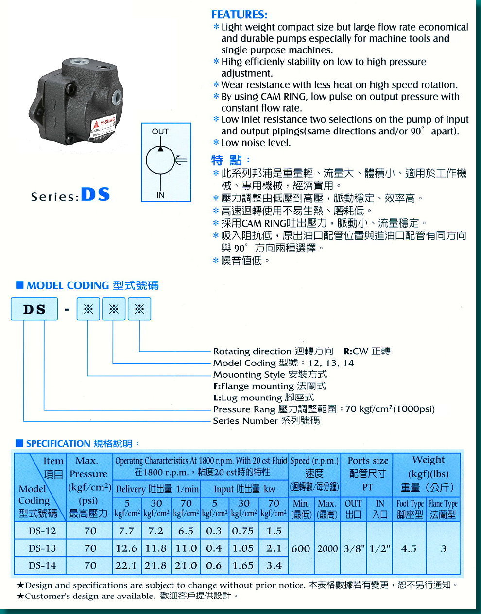 Your position: Home page > Product center > Taiwan Yisheng Yeesen > DS series vane pump