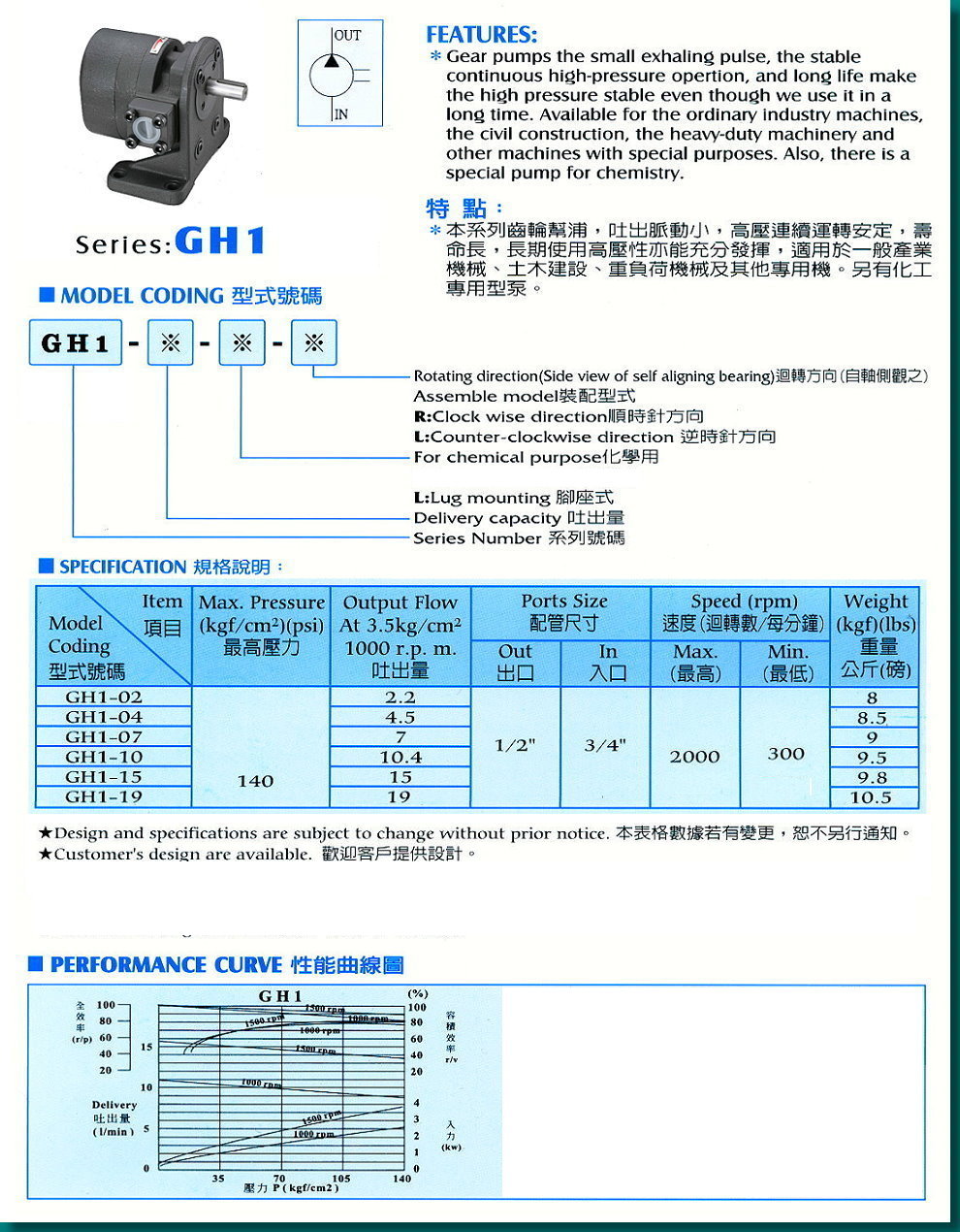 Your position: Home page > Product center > Taiwan Yisheng Yeesen > GH1 series chemical pump