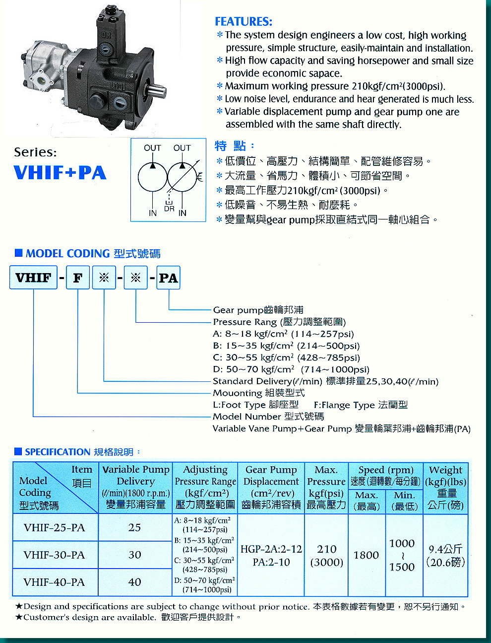 Your position: Home page > Product center > Taiwan Yisheng Yeesen > VHIF series variable pump + gear pump