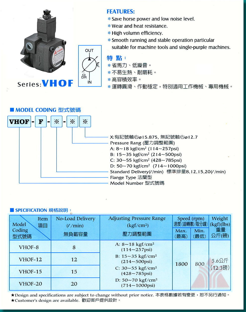 Your position: Home page > Product center > Taiwan Yisheng Yeesen > VHOF series variable vane pump