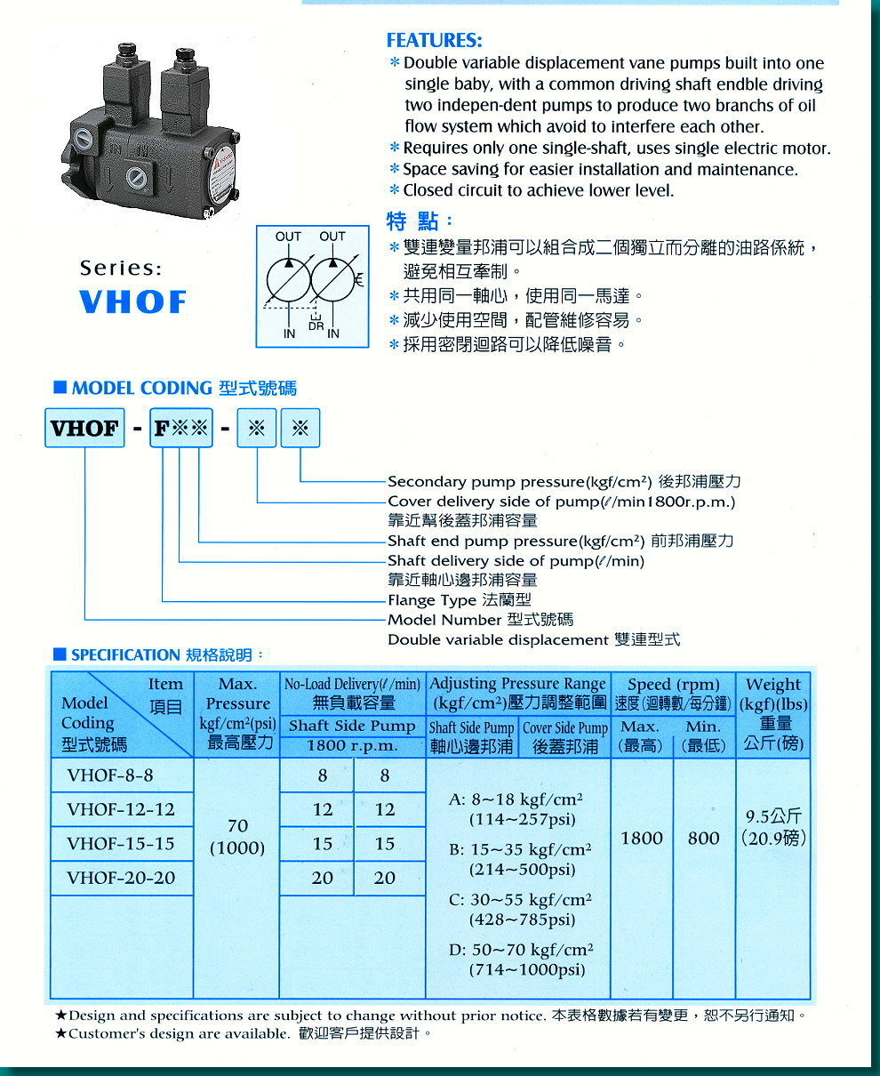 Your position: Home page > Product center > Taiwan Yisheng Yeesen > VHOF series double vane pump